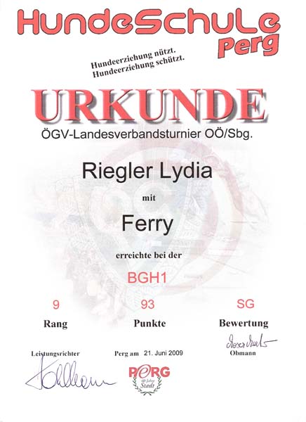 Ich wurde am 12.3.2006 in Graz mit einem V1 und Jugendbester bewertet