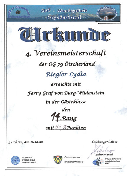 In Graz am 8.3.2009 wurde ich mit einem V1 und CACA bewertet